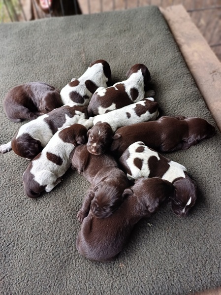 Am 24.Mai 2025 hat Klette 10 braun und braunschimmel Welpen gewölft.
