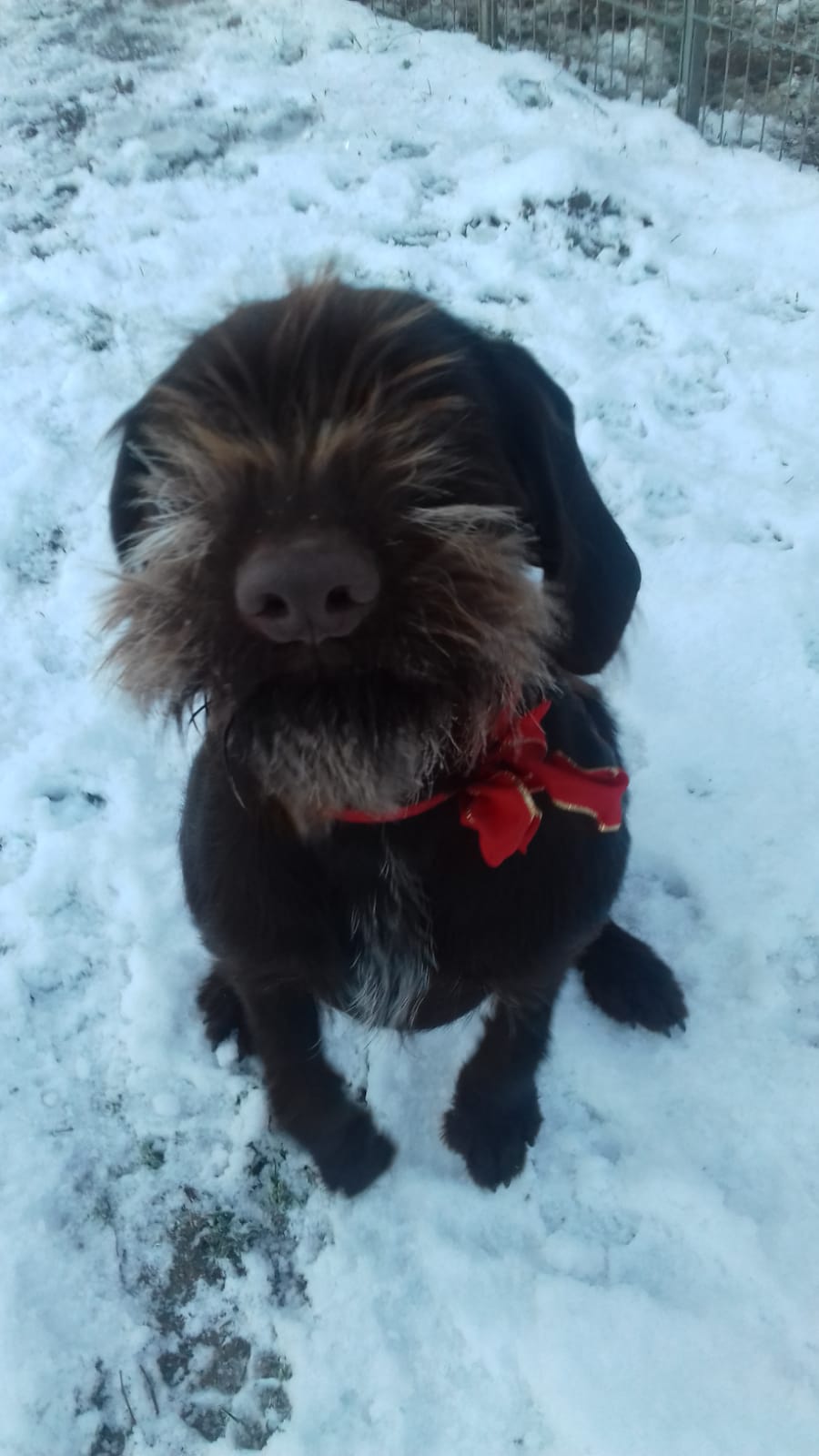 Ich stehe am Anfang meiner Zucht. Was mir wichtig ist bei einem Drahthaar ist ein robuster Typus, ein ausgeprägter Bart, Sichtlaut und eine gute Nase. Die Altmärkers stehen in der Regel für Wasserfreude. Ob mir das mit der Verpaarung von Klette und Birko gelungen ist... wir werden sehen.